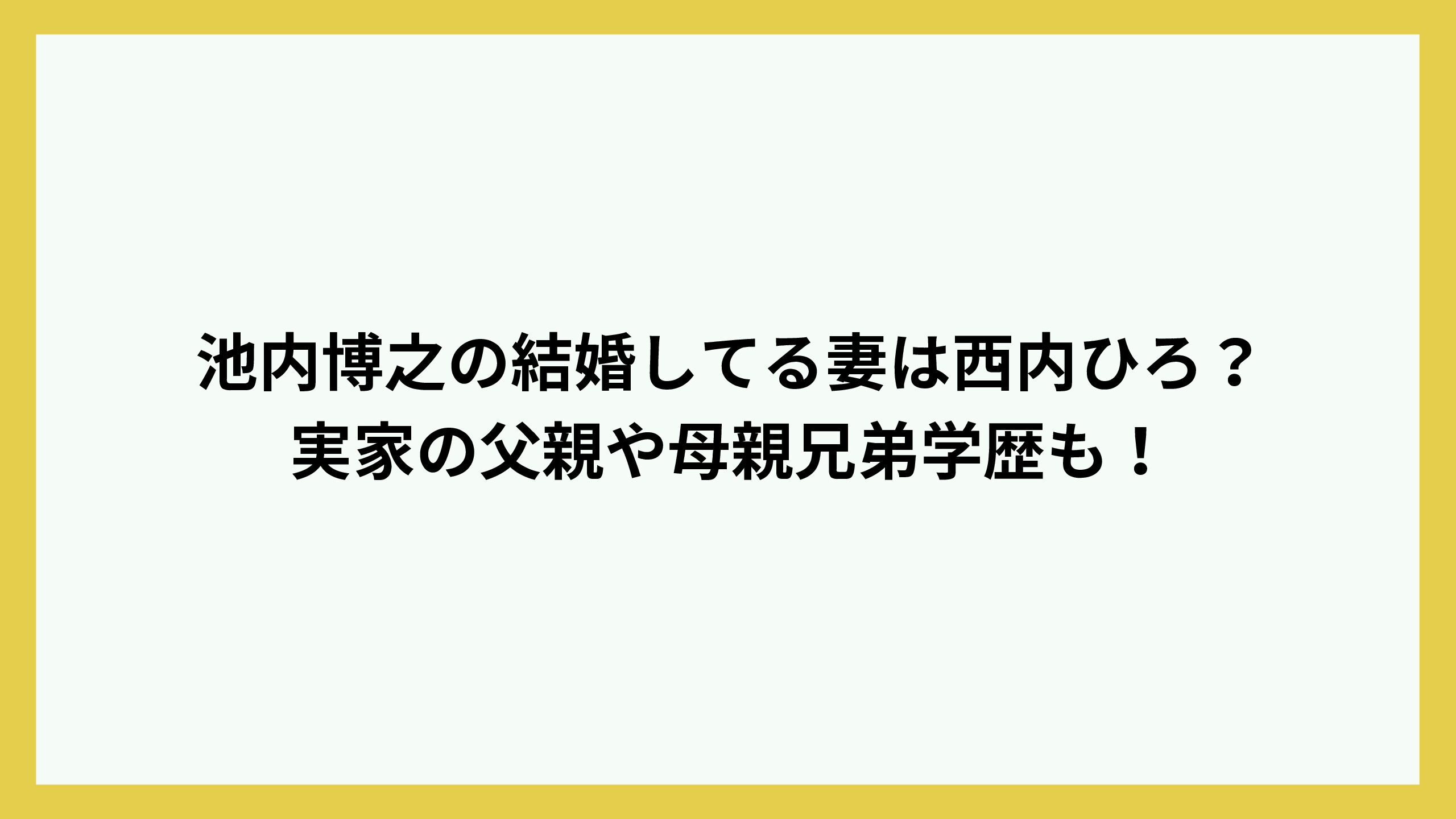 池内博之さんの結婚している妻は西内ひろさんなのでしょうか。池内博之さんの実家の父親や母親兄弟もどうなっているか気になりますね。池内博之さんを初めて認識して観たドラマは反町隆史さん主演のGTO。池内博之さんの出演ドラマを思い出したところで、懐...