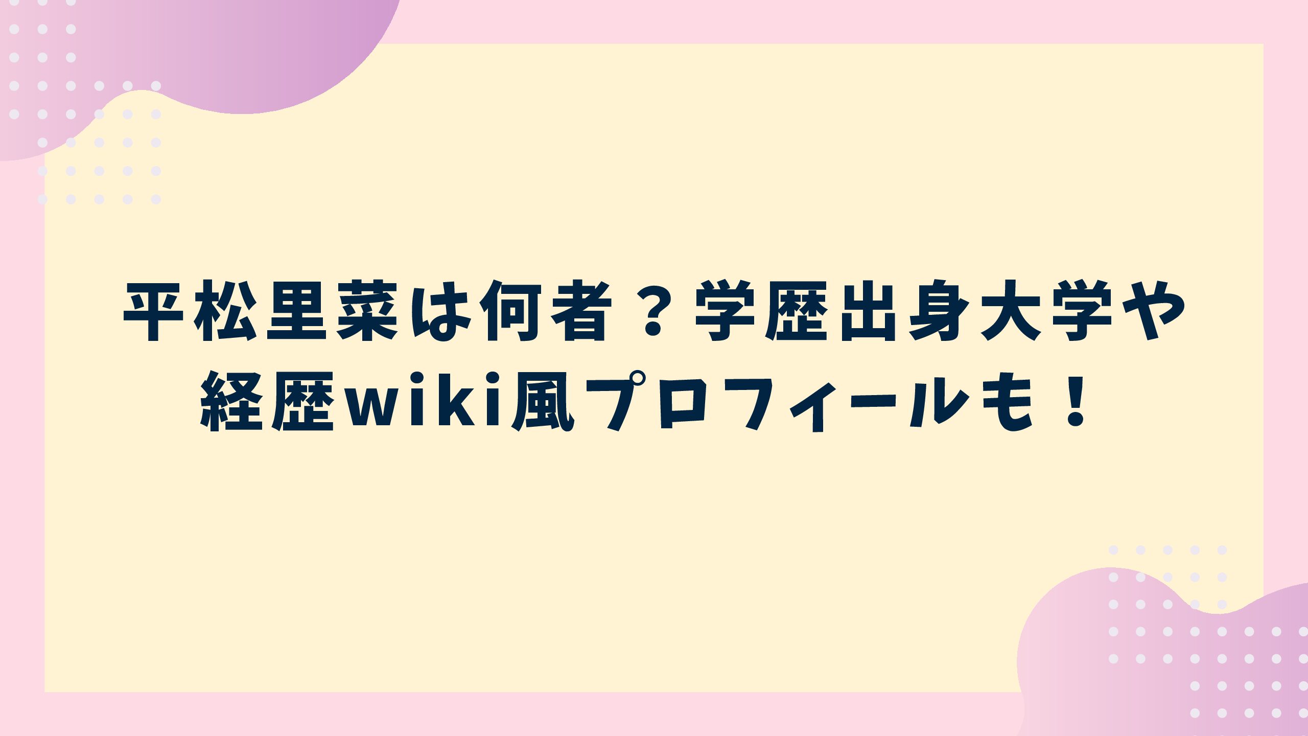 イベント情報 平松里菜は何者?学歴出身大学や経歴wiki風プロフィールも! 平松里菜さんは何者なのでしょうか。平松里菜さんは恋愛リアリティ番組で高い人気を誇る『バチェロレッテ・ジャパン』のシリーズ4で主役に抜擢されました。平松里菜さんが急に注目を浴びることになりましたが、学歴や経歴など気になる人が多いのではと思いま... 2026.04.05 イベント情報