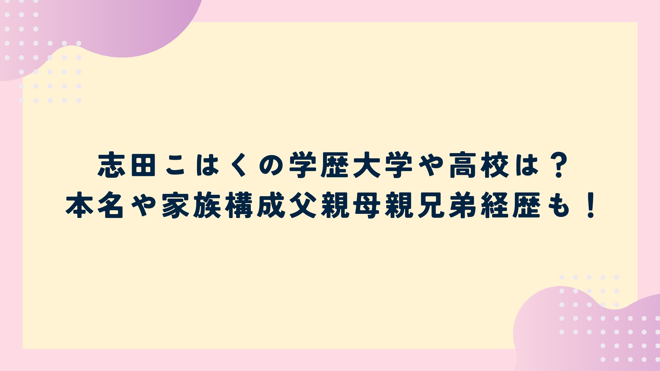 志田こはくさんの学歴が気になりますが、大学や高校はどこなのでしょうか。志田こはくさんの名前は本名なのでしょうか。志田こはくさんの家族構成である父親や母親兄弟はどうなっているのか気になりますね。今回は『志田こはくの学歴大学や高校は?本名や家族...
