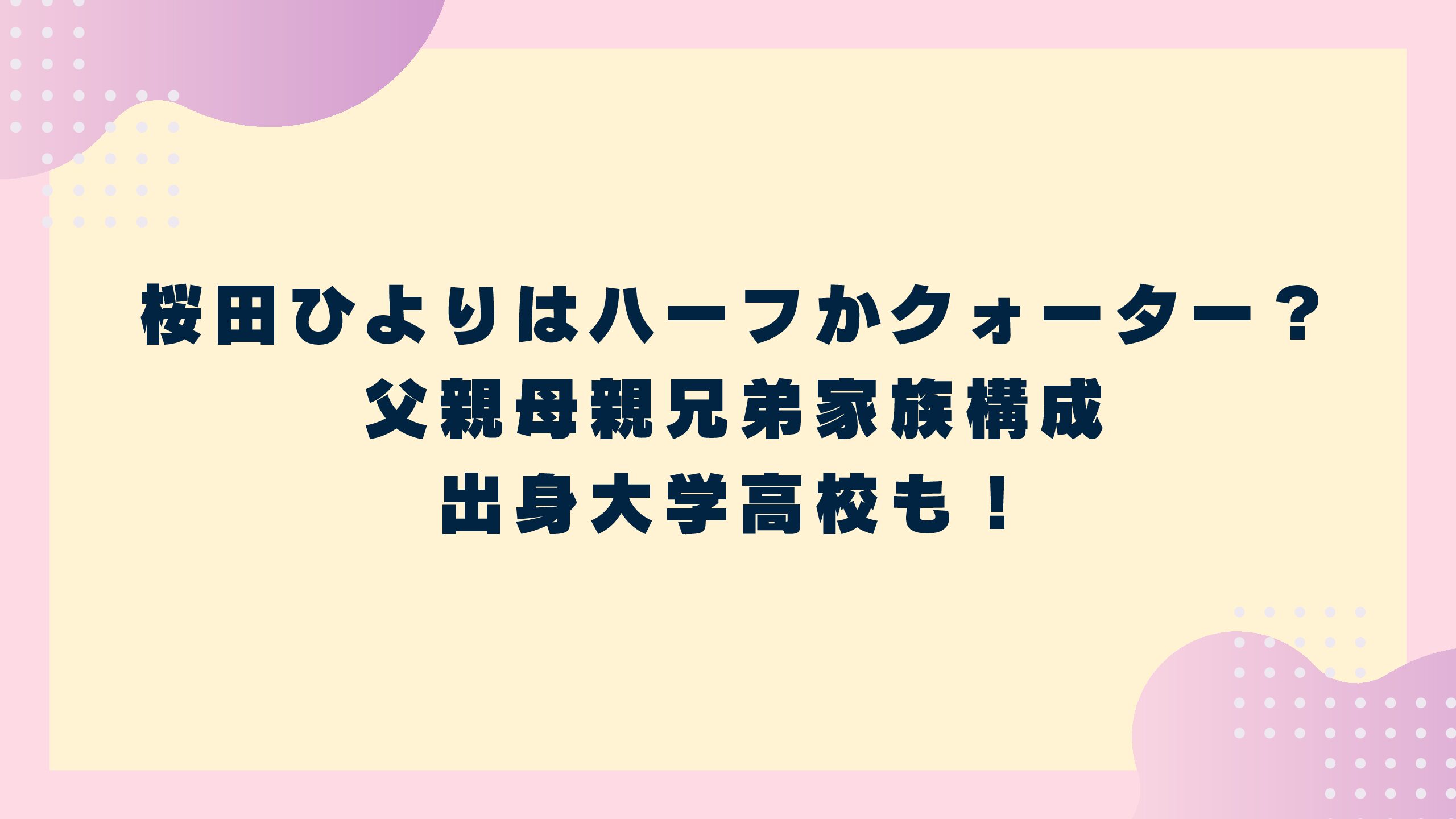 今回は『桜田ひよりはハーフかクォーター?父親母親兄弟家族構成に出身大学高校も!』と題して桜田ひよりさんはハーフかクォーター?父親母親兄弟家族構成に出身大学高校などを調べてみました。